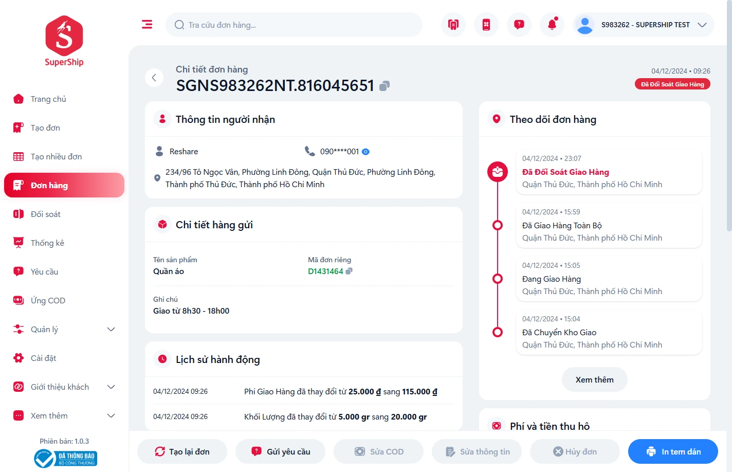Sau khi đơn hàng vừa tạo đã xác nhận thành công, hệ thống ghi nhận và nhân viên giao hàng SuperShip sẽ sắp xếp thời gian qua lấy hàng.